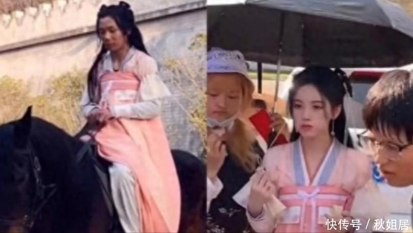 烈日之下,她本人坐于遮阳棚内休息,镜头前活动的却是另一位身形相似的女性。
