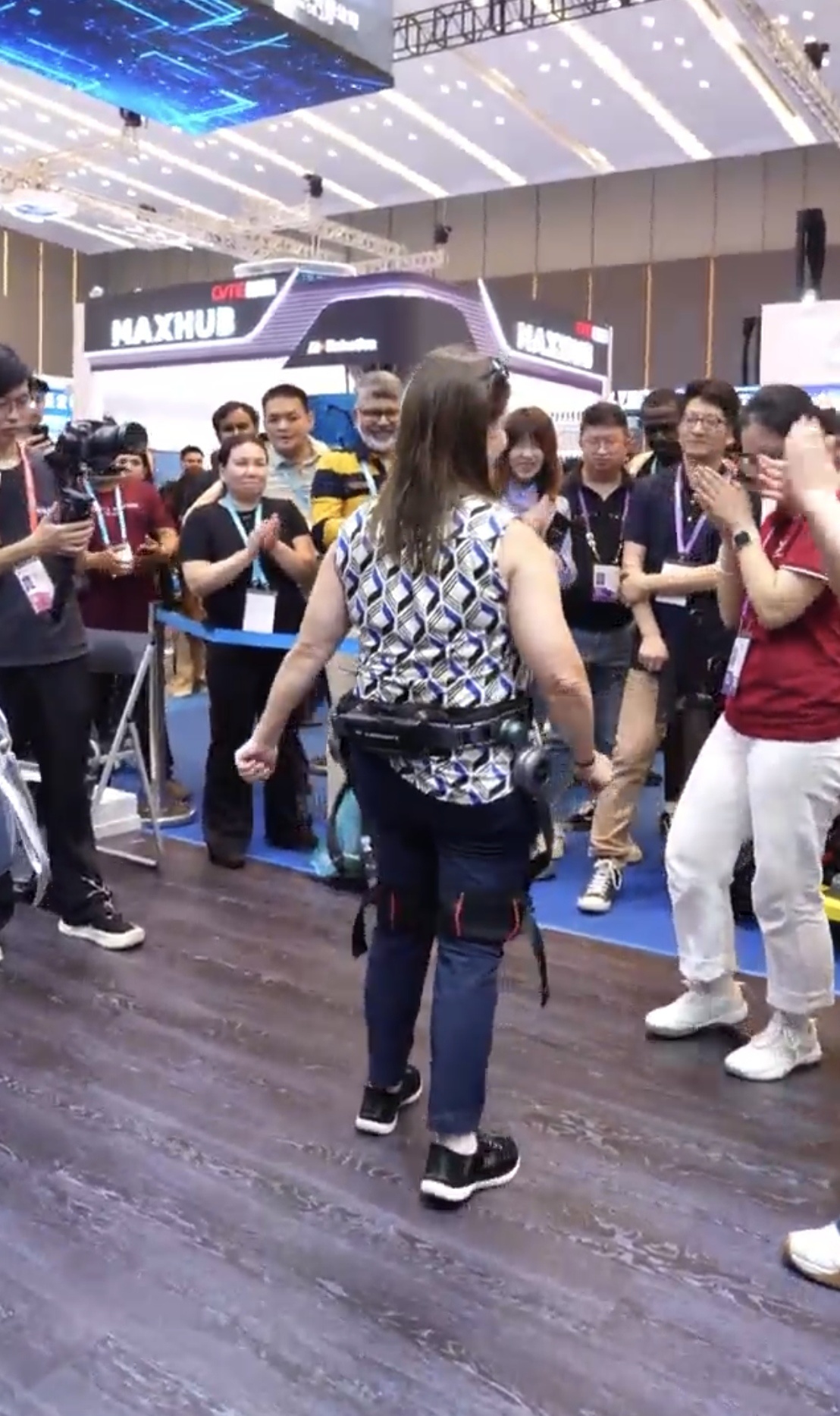 4月22日,应太希智能邀请,玛利亚也来到太希智能,梁林超为她赠送了广交会同款的外骨骼产品,玛利亚激动地用中文重复“谢谢”,眼中满是欣喜,她表示,这件来自中国的科技礼物,将为自己的生活带来全新可能,也期待让更多同胞了解这项中国技术。
