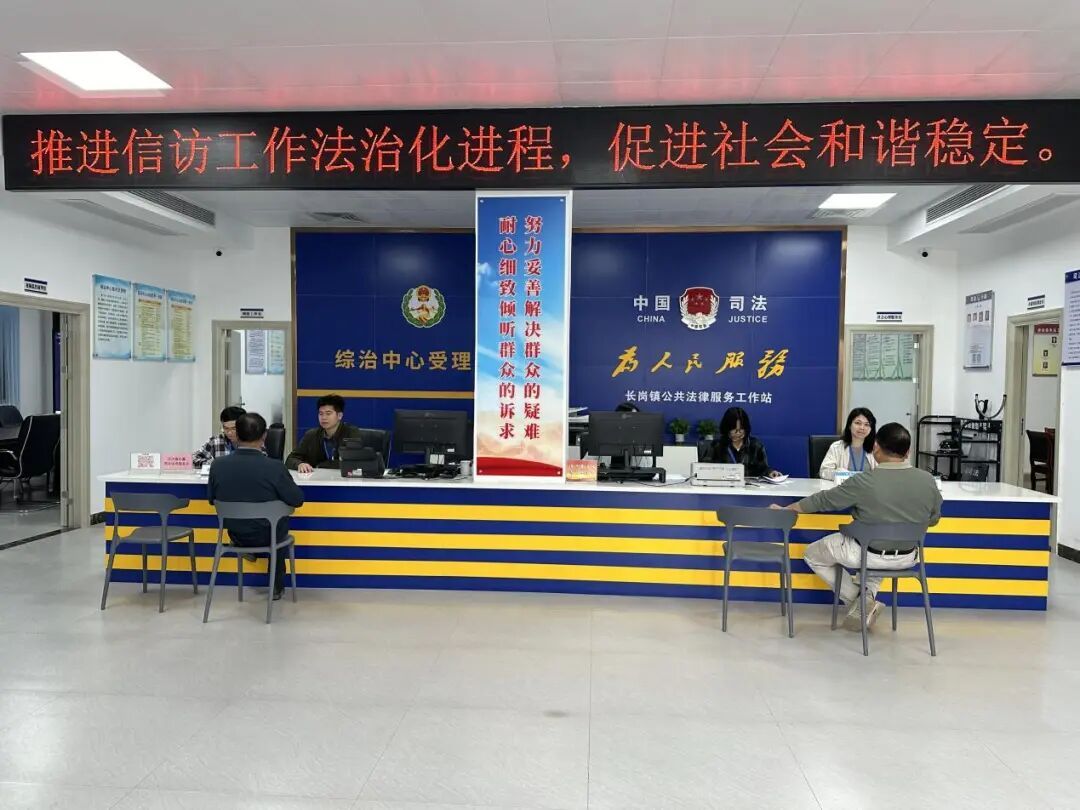 长岗镇综治中心充分发挥基层社会治理“1”的作用,整合镇级各职能部门、信访调解、派出所、司法所、法院、检察院等“6+N”平安建设资源,打造具有信访调处、调解、法律援助、仲裁、诉讼、心理服务等功能的“一站式”矛盾纠纷化解平台,有效促进职能部门联通联动。